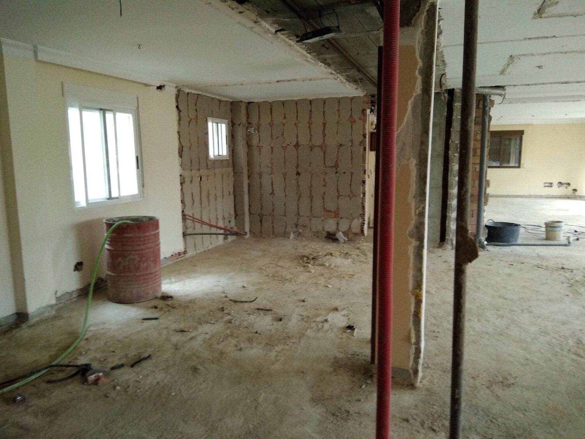 Al eliminar la puerta de la galería se ha conseguido mayor amplitud y continuidad, integrándola así, dentro de la cocina. Se han utilizado revestimientos porcelánicos en blanco brillo, un frontal decorativo y un pavimento imitación madera que se ha igualado al resto de la vivienda, ya que en la cocina había suelos superpuestos. Armariada en serie LUXE blanco brillo con gran capacidad de almacenaje, tiradores tipo uñero, lavavajillas integrable, pila encastrada, ventanas de aluminio lacadas en blanco de doble acristalamiento, desplazamiento del contador del gas natural de la galería al patio de luces, columna de horno y microondas, despensa, armario de suelo a techo en la galería, tira de led encastrada en la armariada, conexión de televisión, dos ambientes de iluminación, casoneto para puerta corredera, bancada en silestone con 4 cm de canto, colocación de pladur, desplazamiento del calentador para colocar el armario de la galería.